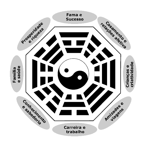 Veja abaixo todas as áreas do Bagua e exemplos de como ativá-las por meio dos símbolos:
